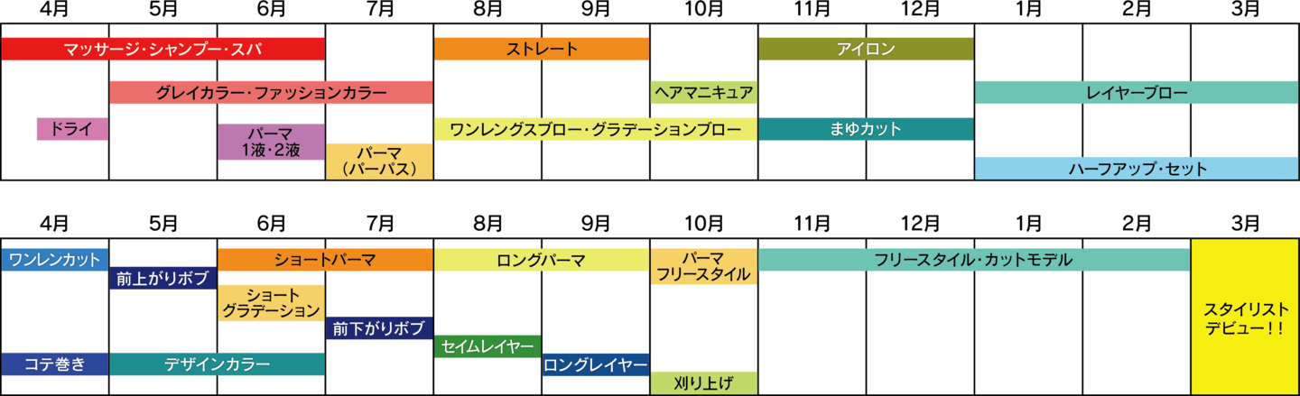 3、4年かけてゆっくりコースまで自分のペースでスタイリストになることができます✨